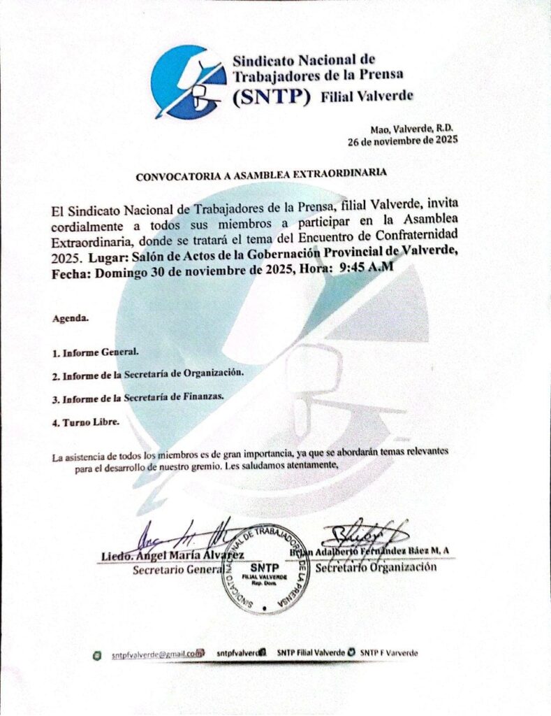 30-11-2025 El Sindicato Nacional de Trabajadores de la Prensa, filial Valverde, recuerda la asamblea extraordinaria...