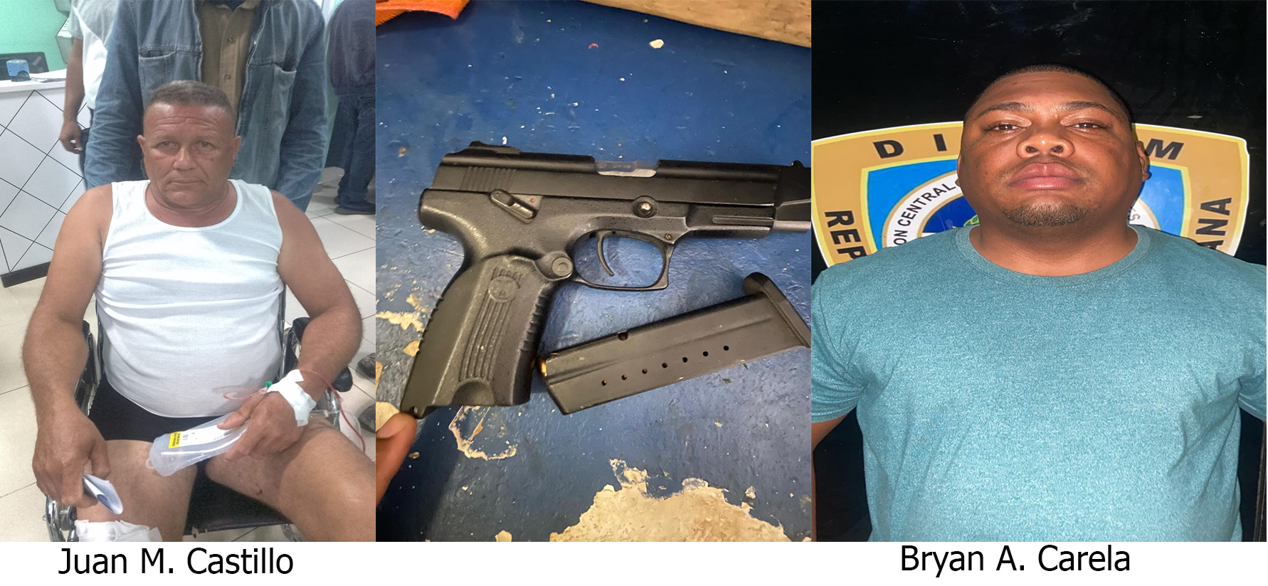 Bryan admitió haber disparado con una pistola marca Viking, calibre 9mm, alegando que lo hizo para defenderse de un individuo apodado “Efraín” quien intentó agredirlo mientras se encontraba en un negocio del sector Puerto Rico. De acuerdo a lo explicado por Carela Cedeño, él hizo los disparos al aire, pero de manera accidental alcanzaron a las dos personas que no tenían relación con el incidente. El arma utilizada y el detenido permanece bajo custodia policial y el caso fue puesto a disposición del Ministerio Público para los fines correspondientes (Cortesía EL NUEVO DIARIO)