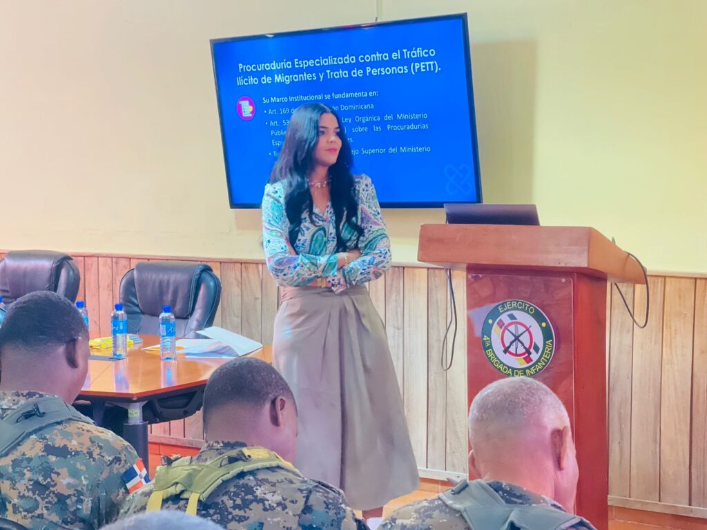 La actividad estuvo encabezada por el comandante de la 4ta. Brigada de Infantería, Coronel Guillermo Jiménez Arciniega, quien lideró la sesión junto al Coronel Israel Campos Almonte, director de Inteligencia del Ejército y la Magistrada Jissell Nataly González Uceta, representante de la Procuraduría Especializada contra el Tráfico Ilícito de Migrantes y Trata de Personas (PETT).
