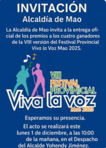 1-12-2025 La Alcaldía de Mao invita para mañana lunes 1 de diciembre, a las 10:00...