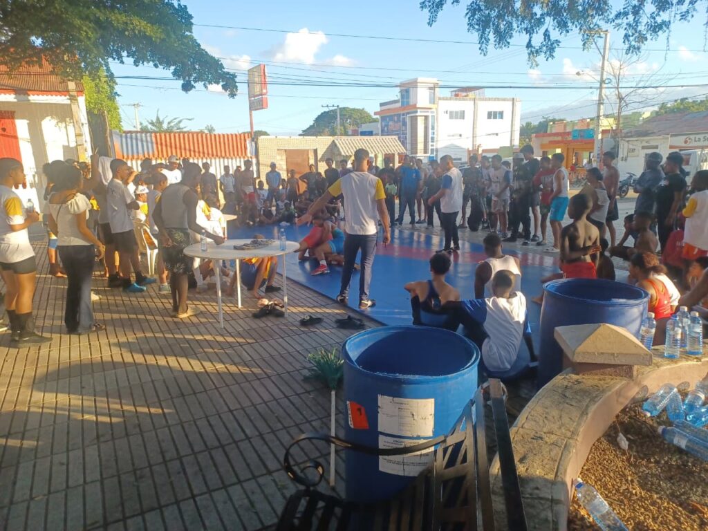 También niños, niñas y adolescentes, se enfrentaban en la lucha olímpica, dentro del parque, en la esquina que conforman las calles Sánchez, con 27 de febrero.
