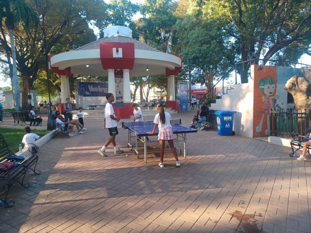 Un grupo de niños, niñas y adolescentes, cerca de la glorieta, del parque, jugaban con mucho amor en la competencia del juego de raqueta y la bola de Ping pong, según pudieron comprobar reportero de Impacto Maeño.