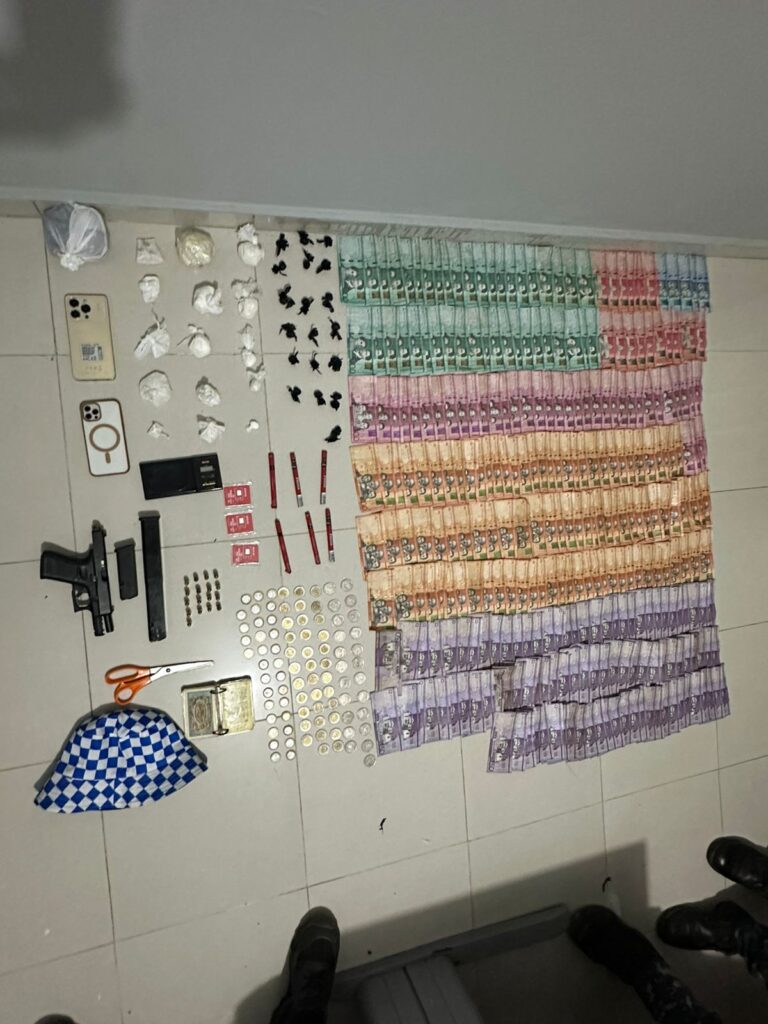 Durante la intervención, los agentes también ocuparon 19 porciones de un vegetal presumiblemente marihuana, con un peso aproximado de 18.7 gramos; cinco porciones de un polvo blanco presumiblemente cocaína, con un peso aproximado de 76.9 gramos; 10 porciones de un material rocoso presumiblemente crack, con un peso aproximado de 300 gramos, además de una suma de dinero en efectivo ascendente a $70,825 pesos en diferentes denominaciones.